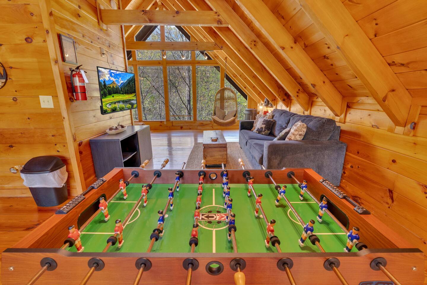 Nestled in the heart of the Smoky Mountains, you will be minutes from Dollywood, Gatlinburg, hiking, and dining! Unwind in the hot tub, challenge friends to foosball, or relax by the indoor fireplace. Our fully equipped kitchen is ideal for preparing meals and the peaceful forest views provide a serene backdrop for your stay. Whether you're planning a romantic getaway or a family vacation, we would love to host you while you make memories!