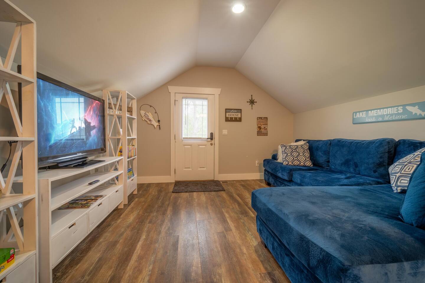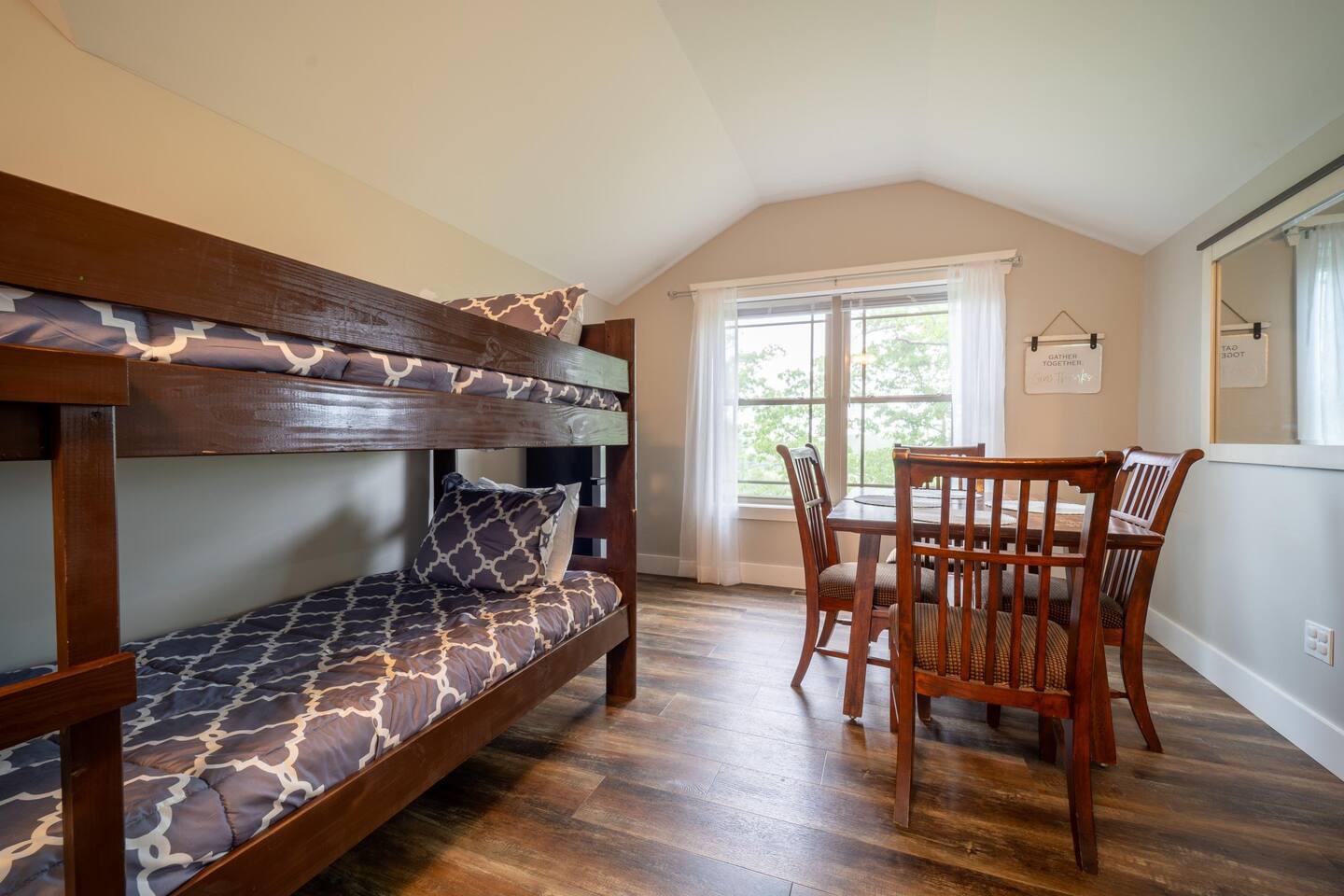 Bedroom #3 (“Lake Bass Loft”): 1 King Bed + 1 Double Bed + 1 Bunk Bed