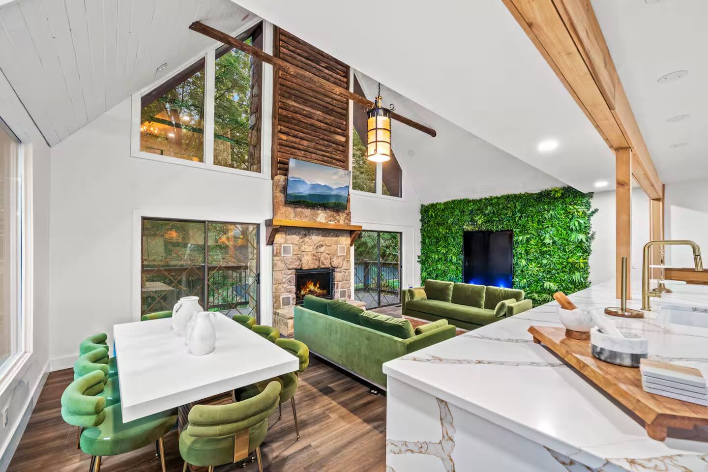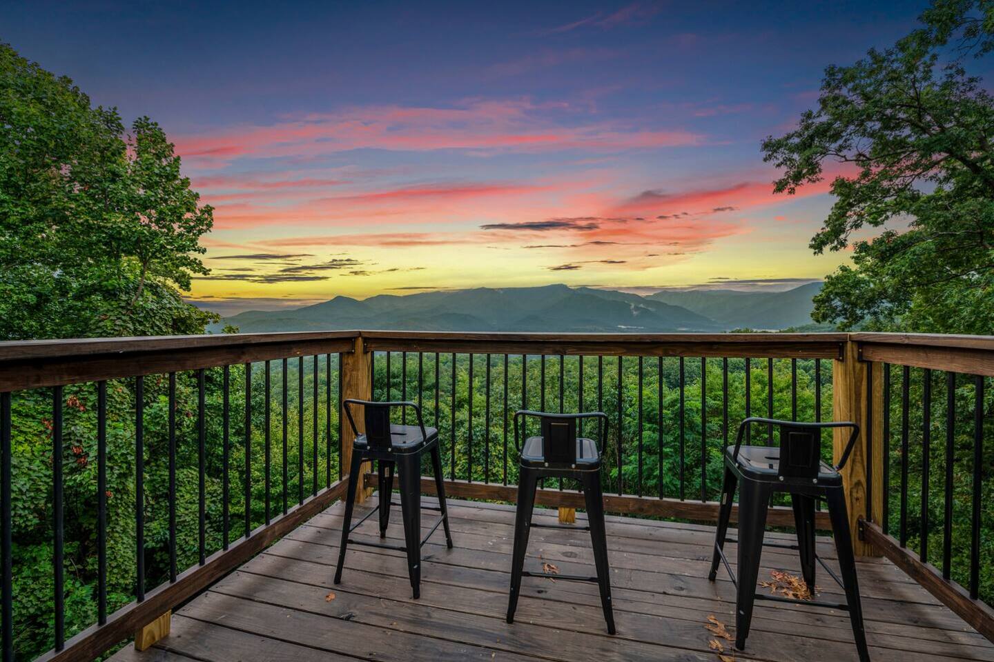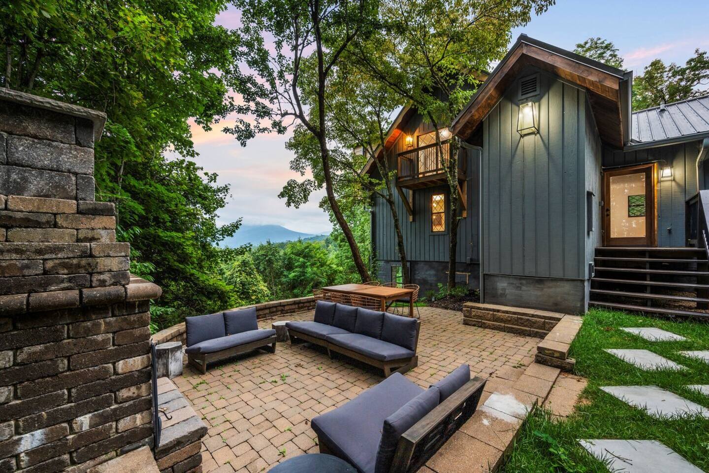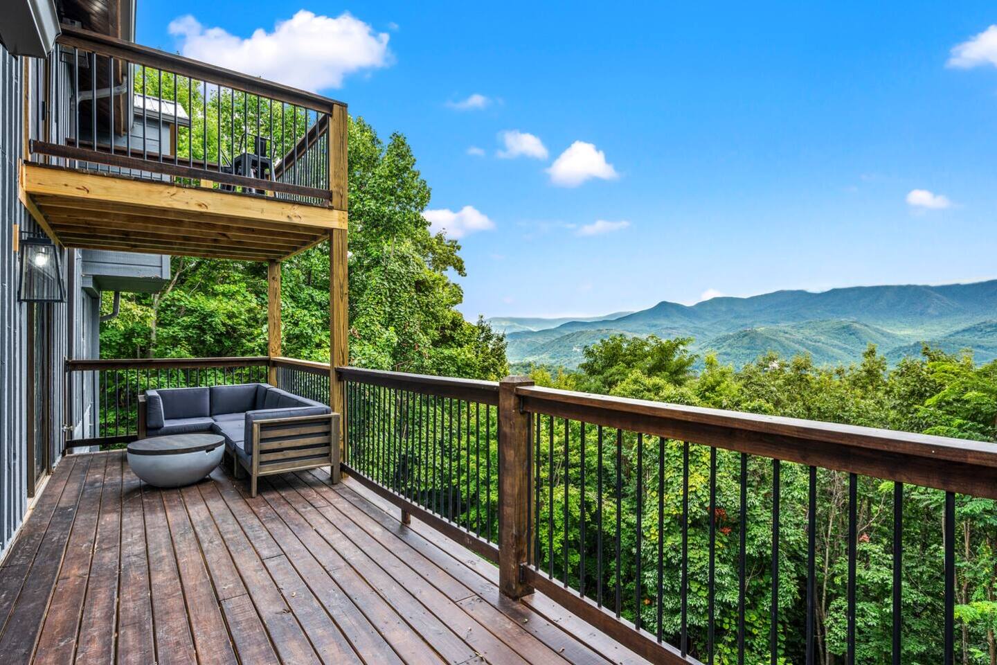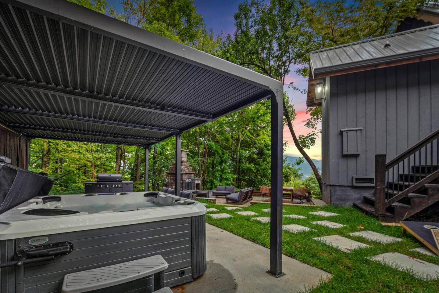 ✔ 8-person hot tub, outdoor fireplace, hammocks, and lounge area with stunning mountain views