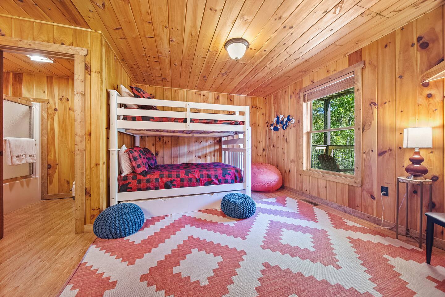 – Bedroom 4: Bunk Room with 3 Full Beds + Private Bath