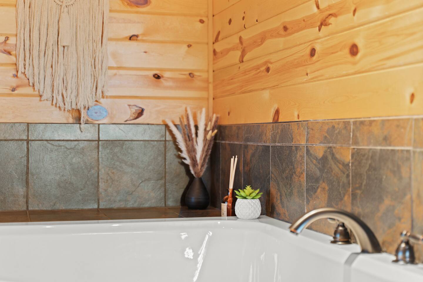 We loved our cozy mountain getaway! The hot tub was so nice, we were grateful the kitchen had tools and pots and pans for cooking. Loved how there was paper towels and toilet paper. We enjoyed the grill and the outdoor table! Super clean and well organized. The only thing I’d mention is that the bathtub for the upstairs shower is in the hallway upstairs near the balcony, so if you are in a group, there’s only one bathing space that’s private/in a bathroom with a closed door. It was a great weekend!