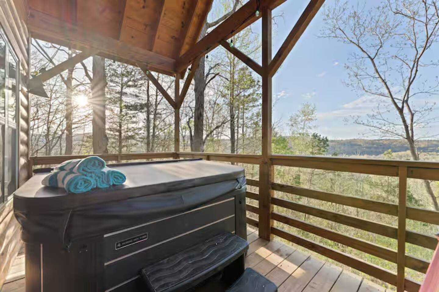 The hot tub is a nice feature and the setting in the trees is nice.
